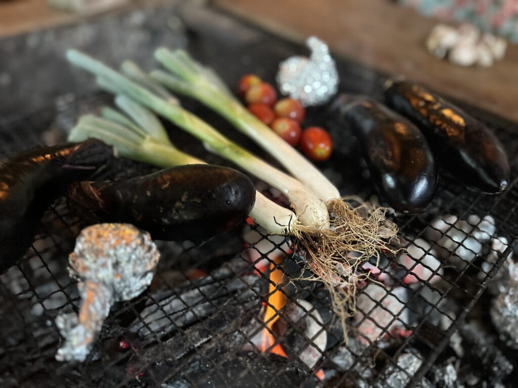 夜は、「環る(めぐる)古民家」にて、自家農園で採れた新鮮な野菜を贅沢に炭火でいただくバーベキュー交流会を開催。実際に目にして、歩いた農園で力強く育った野菜をいただきながら、人と食の魅力を知っていただく機会となりました。
