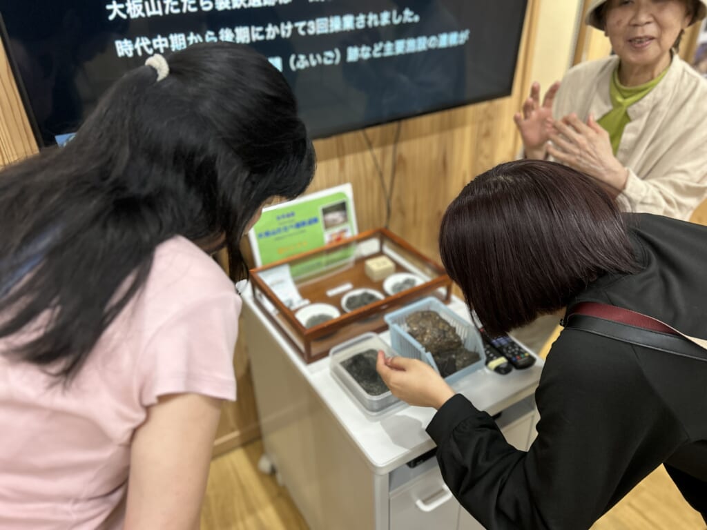 その後、民泊施設に移動しながら、世界遺産にも登録されている「大板山たたら製鉄遺跡」に少し寄り道を。ホストファミリーの野原さんは、こちらの施設でボランティアガイドも担っておられることもあり、「明治日本の産業革命遺産」として江戸時代から幕末にかけて稼働していた本施設を詳しくご案内いただきました。