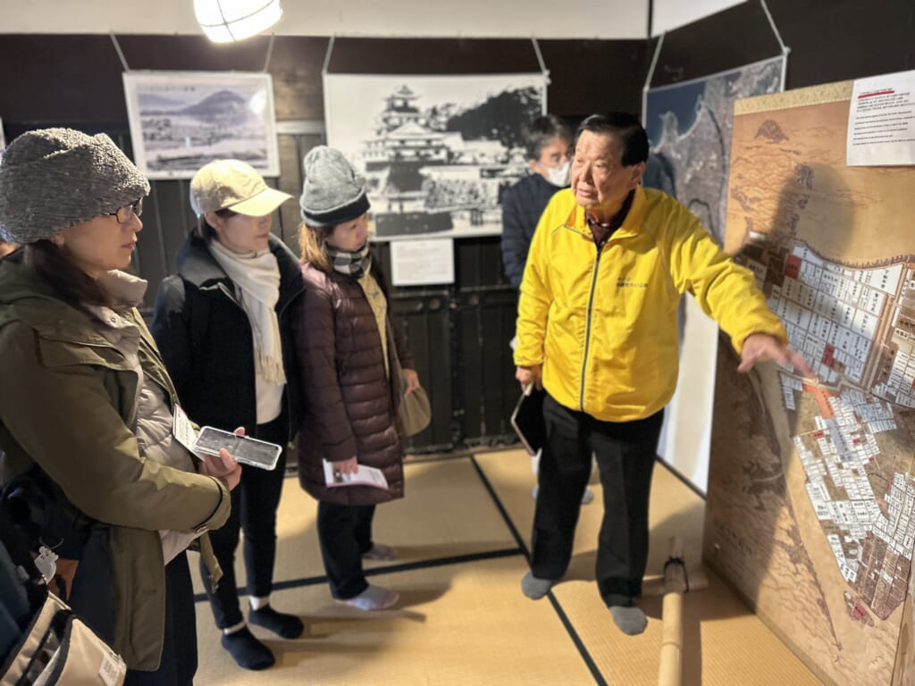 第2回のスタートも前回に続いてサイクリング!ですが、今回は田園ではなく城下町を行くツアーでした。ガイドはもちろん宮崎さんです。街中を走りながら、幕末から明治時代にかけて呉服商や酒造業で栄えた商家「旧久保田家住宅」や萩城下に残る武家屋敷での中でも特に古い歴史を有する「口羽家住宅」、日本100名城の一つとして知られる「萩城跡」、白砂青松の美しい海岸「菊ヶ浜」に立ち寄り、ガイドさんや宮崎さんから萩というまちがどのようにして栄えてきたのか、日本酒との関わりについてお話をいただきました。