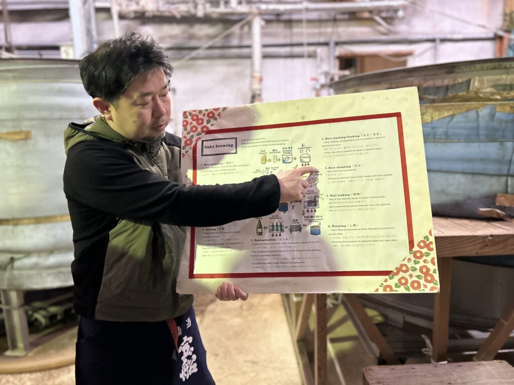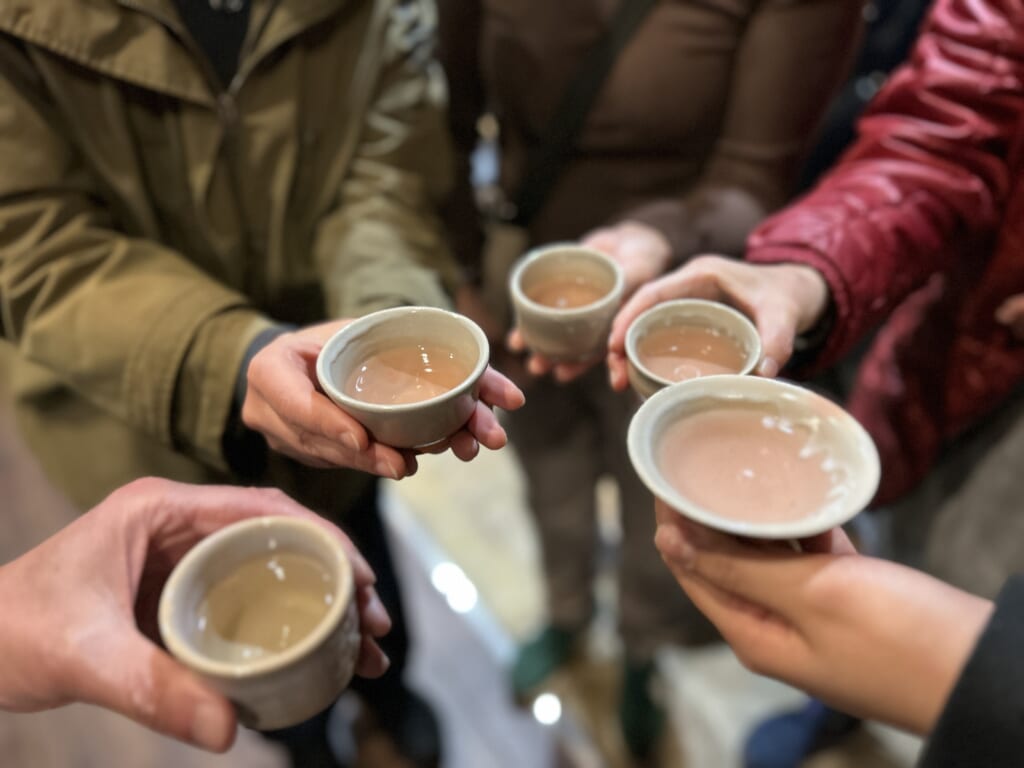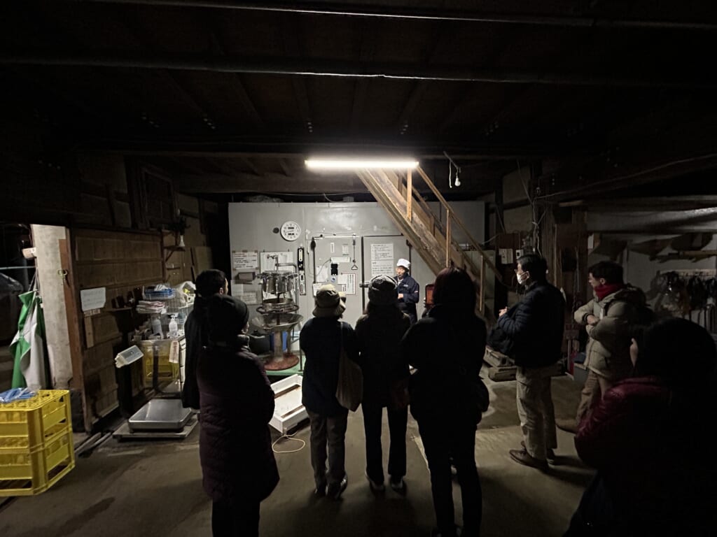 その後に訪問した、木の温もりを感じられる「萩ゲストハウスruco」では、特産の夏みかんを使用したホットドリンクをいただき、これが冷えた身体に本当に沁み渡りました。お待ちかねの酒蔵見学は、明治34年創業。米の旨みを活かしたふくよかな味わいが特徴の代表銘柄「長陽福娘」で知られる「岩崎酒造」さんへ。出荷前の非常に忙しいタイミングにも関わらず、とても丁寧に蔵の中をご案内いただき、試飲もたっぷり楽しませていただきました。