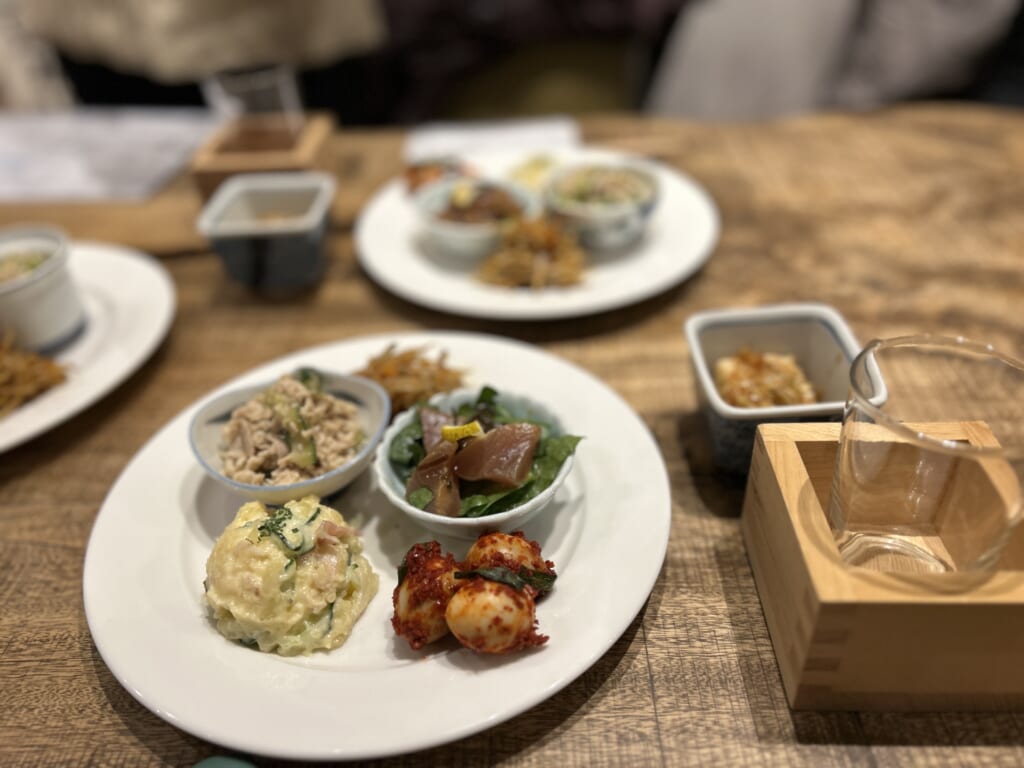 この日の交流会は、素敵なご夫婦が営まれる「yamamichi食堂」さんへ。台湾料理やスパイスの効いた多国籍なメニューと萩のお酒を心ゆくまで堪能いただき、歴史に裏打ちされた萩市とお酒のつながりについて、改めて深く知ることのできた1日となりました。