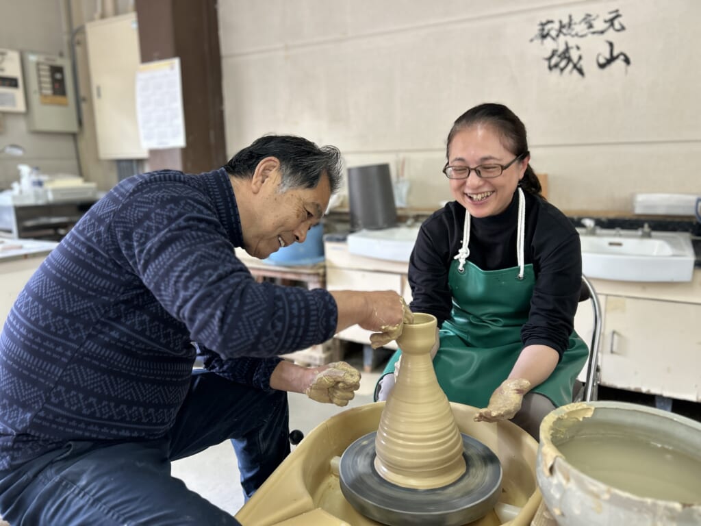 その後は、オリジナルの酒器づくりを「城山窯」さんで体験。完成間近で崩れてしまうなど、思い出深いハプニングもありつつ、ぐい呑みや平杯など、優しく丁寧に教えてくださる先生方の指導のもと、皆さん満足のいく作品ができ、年明けの完成が今から待ち遠しいねと、何度も顔を見合わせていました。