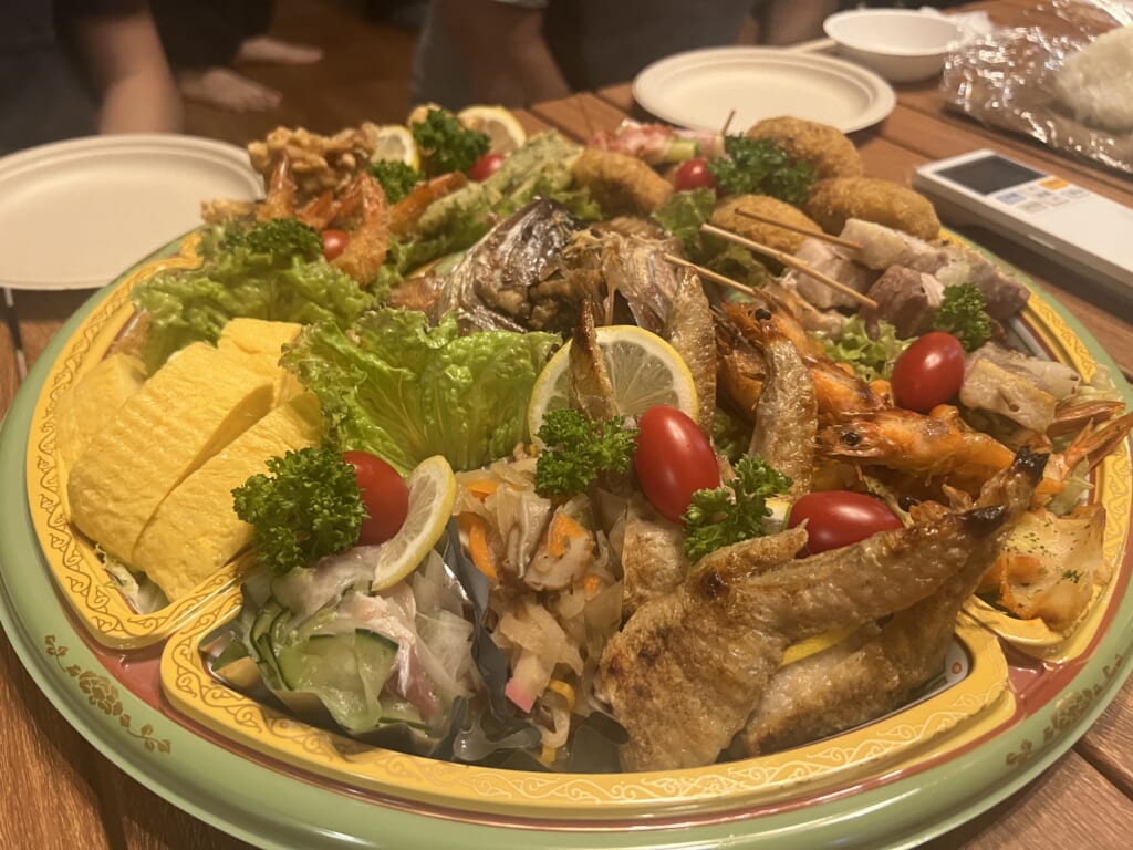 夕食は、古民家をリノベーションした宿泊施設「アオイロ」にて。地元の仕出し屋が用意した料理と地元の酒蔵「大嶺酒造」の日本酒を囲みながら、参加者同士の交流を深める時間となり、初日の締めくくりに相応しい和やかな夜となりました。