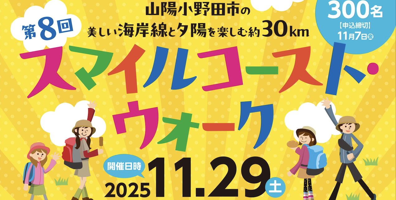 スマイルシティ山陽小野田市で開催される「第8回スマイルコースト・ウォーク」をご案内するあっちゃんです!